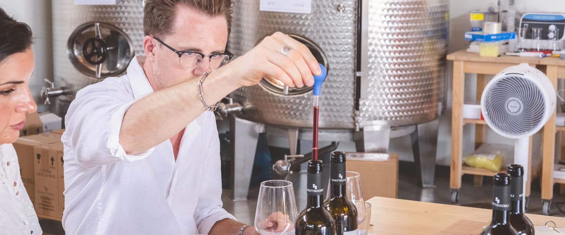 L’esperienza più pratica di Quattrocieli: gioca con i nostri vini base, analizza aromi e strutture, poi crea il tuo blend personale — guidato passo dopo passo dal nostro winemaker Giuseppe. Alla fine imbottigli, tappi ed etichetti per portarlo a casa. Un regalo unico, consegnato come gift card digitale entro 24 ore.